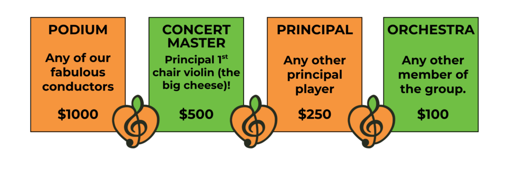 We offer four sponsorship levels. Make a tax-deductible donation to sponsor a friend, loved one, or your favorite instrument! Your name will be listed on our website and in our concert programs along with your sponsored musician. Following the season finale, you will be invited to a post-concert reception to thank you for your support throughout the season.